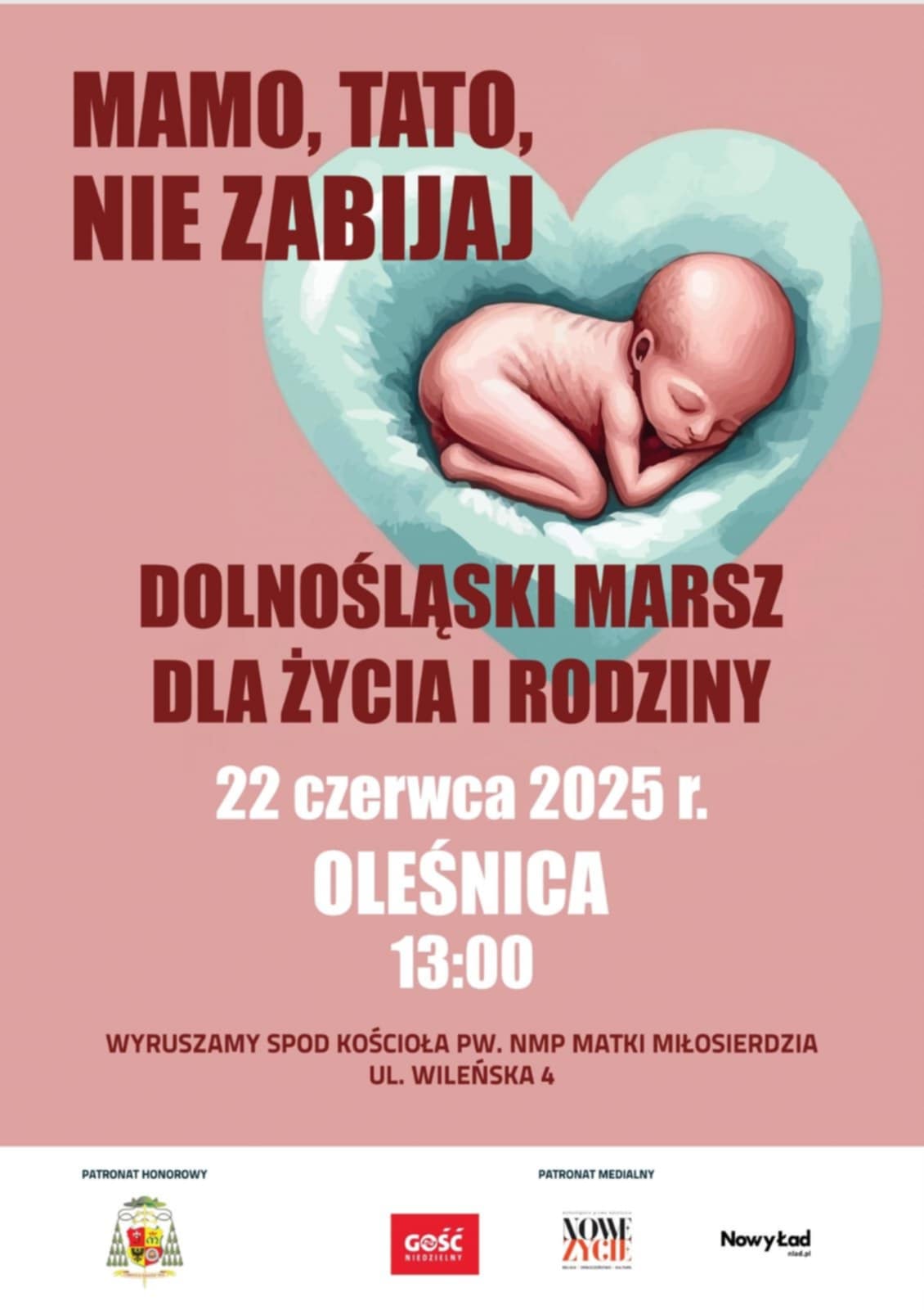 W niedzielę 22 czerwca w Oleśnicy przejdzie Dolnośląski Marsz dla Życia i Rodziny. To odpowiedź na zbrodnie, do których dochodzi w tamtejszym szpitalu. Marsz odbędzie się pod hasłem: „Mamo, tato, nie zabijaj”.