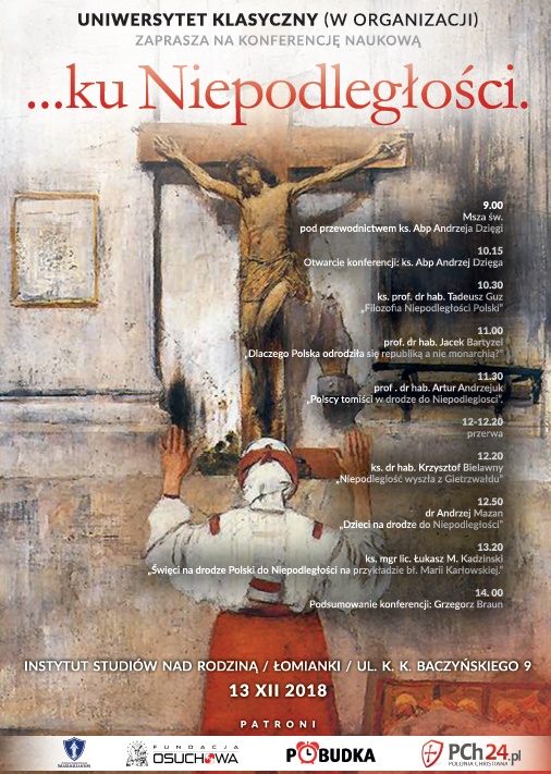 W trwającym jeszcze roku 100-lecia odzyskania niepodległości, czołowi katoliccy naukowcy chcą pokazać szczególny wpływ, jaki na przywrócenie naszej państwowości miała wiara i myśl katolicka. Zapraszamy na wyjątkowe wydarzenie, już 13 grudnia w Łomiankach.