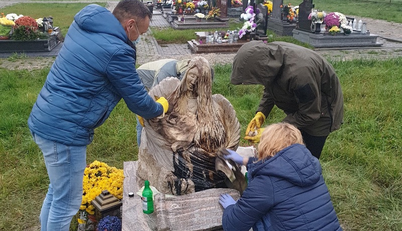 Pomnik dzieci nienarodzonych na cmentarzu w Brzezówce na Śląsku Cieszyńskim, który nieznani sprawcy zniszczyli kilka dni temu, oblewając go czarną farbą, został uratowany dzięki szybkiej interwencji. Po kilku godzinach pracy odzyskał blask, choć nadal widoczne są na nim przebarwienia.