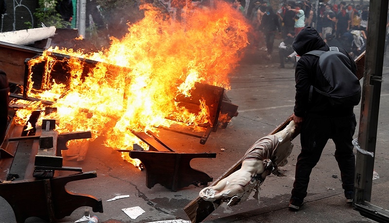 Zamaskowani wandale (najprawdopodobniej spod szyldu skrajnie lewicowej Antify), którzy brali udział w uczestnicy antyrządowej demonstracji w Santiago de Chile niemal doszczętnie zniszczyli XIX-wieczny kościół pod wezwaniem Wniebowzięcia Matki Bożej w centrum miasta.