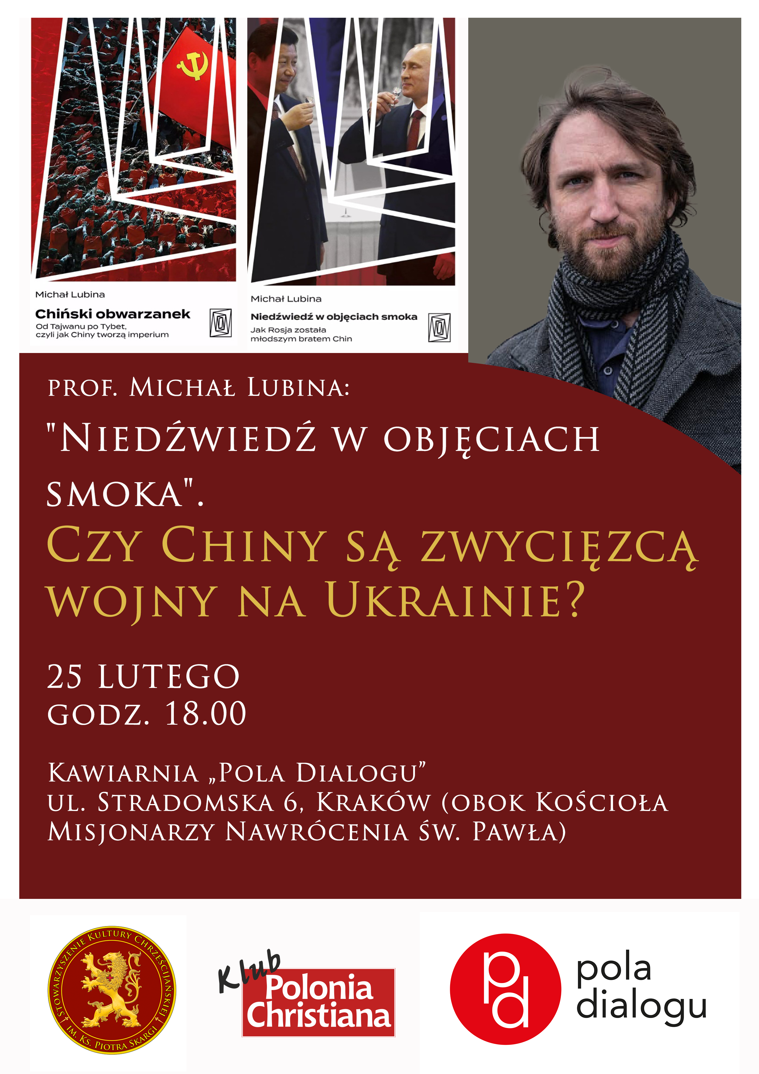Krakowski Klub „Polonia Christiana” zaprasza na spotkanie z prof. Michałem Lubiną, poświęcone aktualnej sytuacji politycznej na świecie oraz roli Chin w trwającej wojnie na Ukrainie.