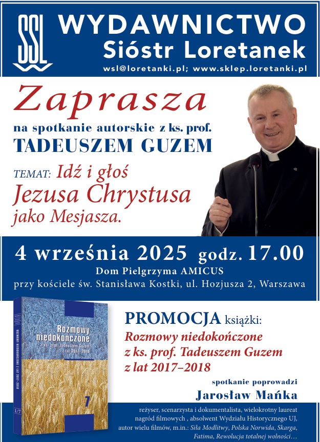 4 września 2025 roku o godzinie 17:00 odbędzie się w Warszawie spotkanie z Księdzem Profesorem Tadeuszem Guzem. Serdecznie zapraszamy na wyjątkowe wydarzenie.