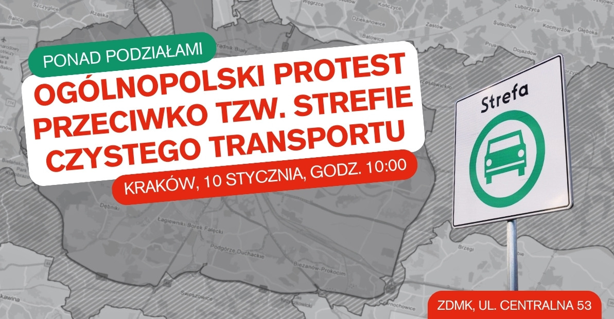 – Kraków należy do wszystkich Polaków, a nie tylko do uprzywilejowanych mieszkańców z grubszym portfelem i nowszym samochodem – wskazuje Piotr Bartosz. – Cel protestu jest jasny. Żądamy całkowitego zniesienia Strefy Czystego Transportu w Krakowie oraz powstrzymania wprowadzania podobnych regulacji w innych miastach. Bronimy wolności poruszania się, prawa własności prywatnej i równości wobec prawa, zamiast dalszego dzielenia narodu pod pretekstem ekologii – dodaje.