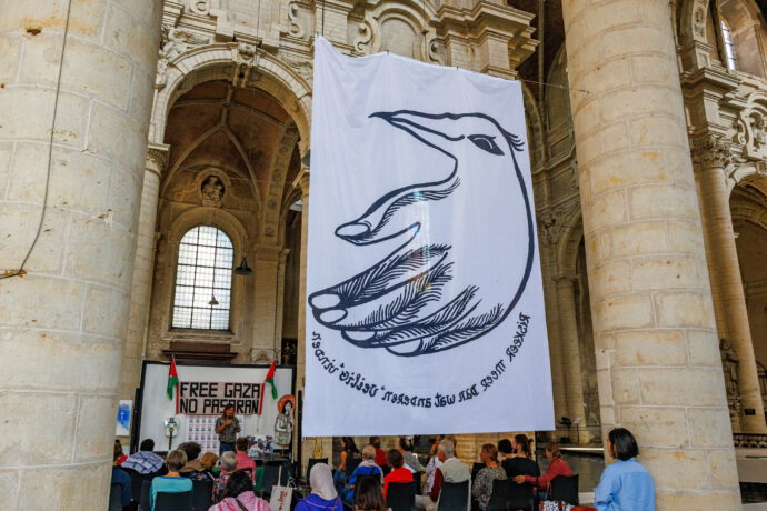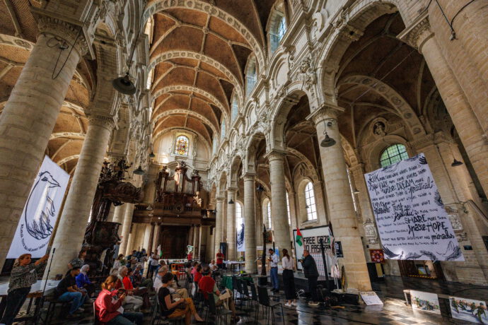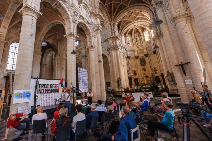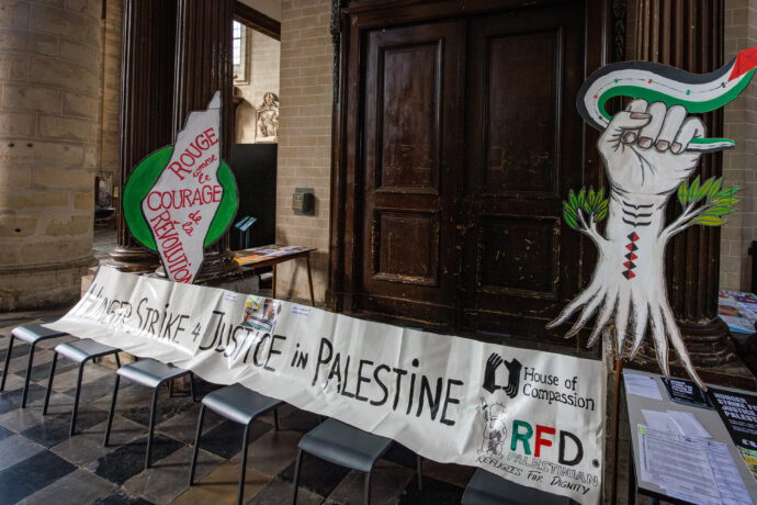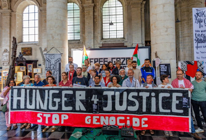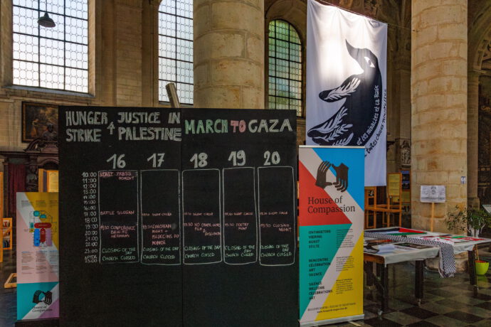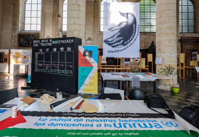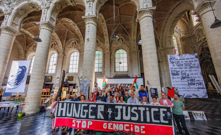 Obecnie ks. Alliet zdecydował, że przestrzeń, która powinna służyć wyłącznie sprawom nadprzyrodzonym, uczyni miejscem strajku głodowego. 10 protestujących będzie przebywać przez kolejne 5 dni w brukselskiej świątyni. Zachwycający zabytkowym pięknem kościół pokryto transparentami i materiałami agitacyjnymi, wzywającymi do zerwania wszelkich kontaktów dyplomatycznych pomiędzy Unią Europejską a Izraelem.