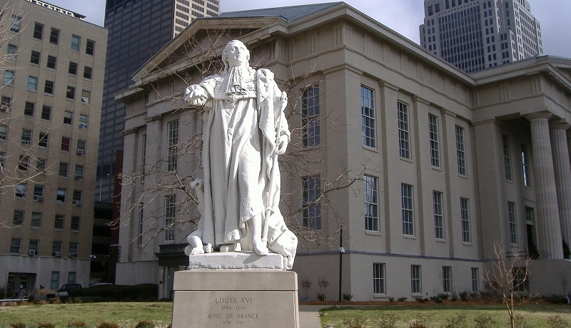 W trakcie protestów w miejscowości Louisville doszło do zniszczenia pomnika Ludwika XVI. 29 maja Eric Crawford pracujący tam dziennikarz opublikował na Twitterze osobliwy filmik. Przedstawiał on półnagiego czarnoskórego mężczyznę, który stanął na postumencie pomnika Ludwika XVI, urwał mu rękę i zeskoczył z tą ręką w dół.