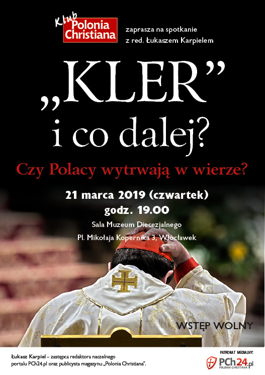 Klub „Polonia Christiana” zaprasza na spotkania z Łukaszem Karpielem, zastępcą redaktora naczelnego PCh24.pl, który odpowie na pojawiające się pytania o przyszłość Kościoła.