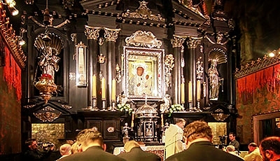 Kapłan prowadzący Apel powiedział o naszej obecności pielgrzymom. Słowa o wdzięczności, wotum i Akcji padły więc wprost przed cudownym obrazem. Inni wierni przyjęli je bardzo ciepło.
