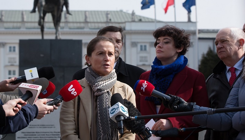 Monika Jaruzelska zaprezentowała w poniedziałek emocjonalną przemowę na konferencji prasowej zorganizowanej przez Sojusz Lewicy Demokratycznej przed pałacem prezydenckim przy Krakowskim Przedmieściu w Warszawie.