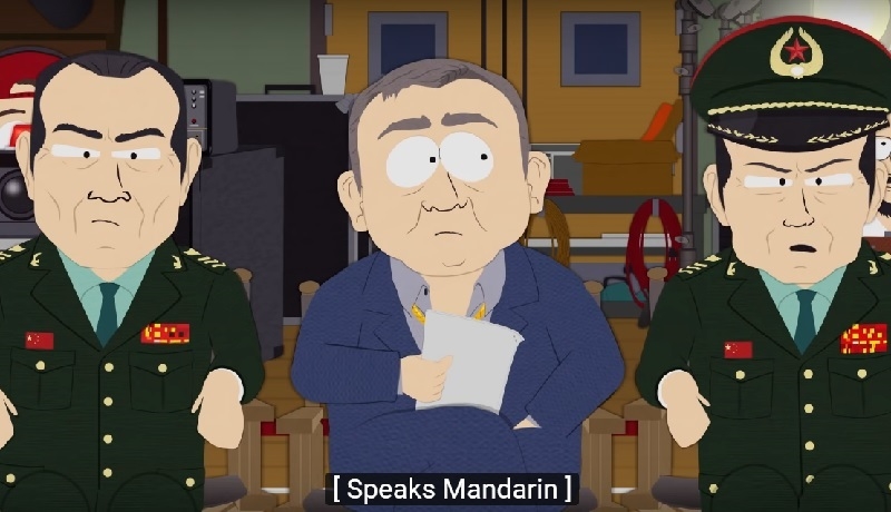 W nocy 2 października minionego roku filmowy kanał Comedy Central wyemitował odcinek prześmiewczego serialu „South Park”, zatytułowany „Band in China”. Była to satyra na temat sposobu, w jaki Pekin wykorzystał otwarcie swojego rynku dla wywarcia wpływu na amerykański przemysł rozrywkowy.