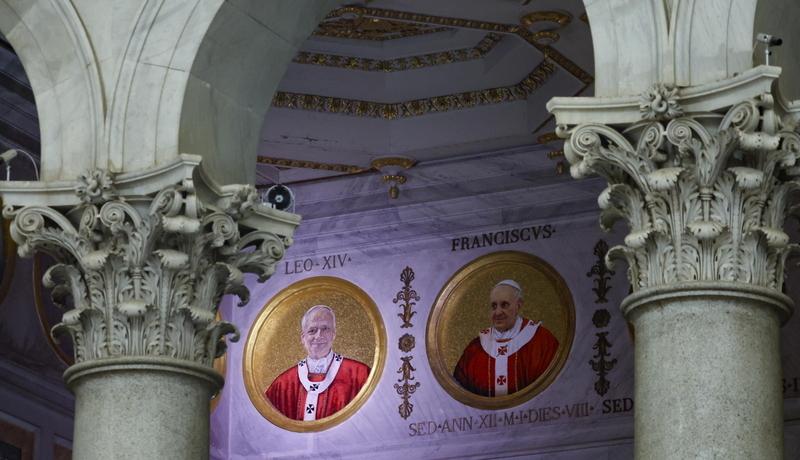 W Bazylice św. Pawła za Murami, w galerii papieskich mozaik okalających wnętrze świątyni, można już oglądać wizerunek Leona XIV. Jako jedyny jest on podświetlony, bowiem, według tradycji, iluminacja wskazuje papieża, który aktualnie zasiada na Tronie Piotrowym.