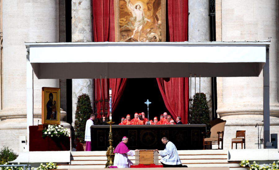 Po Komunii świętej podczas Mszy świętej pogrzebowej papieża Franciszka rozbrzmiała Litania do Wszystkich świętych za jego duszę. Następnie wikariusz generalny diecezji Rzymu prowadził obrzędy ostatniego pożegnania.