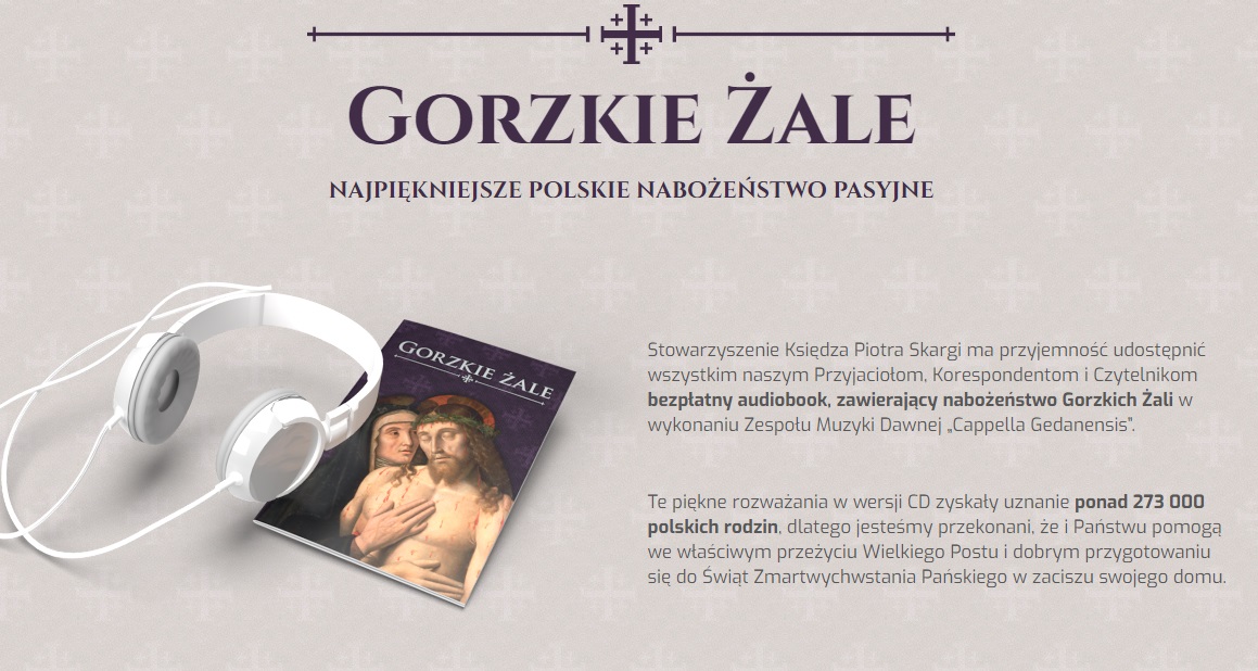 Wystarczy wejść na specjalnie przygotowaną dla Państwa stronę klikając TUTAJ, aby na dowolnym urządzeniu i o każdej porze wsłuchiwać się w „Rozmowę duszy z Matką Bolesną”, czy też w „Lament duszy nad cierpiącym Jezusem”.