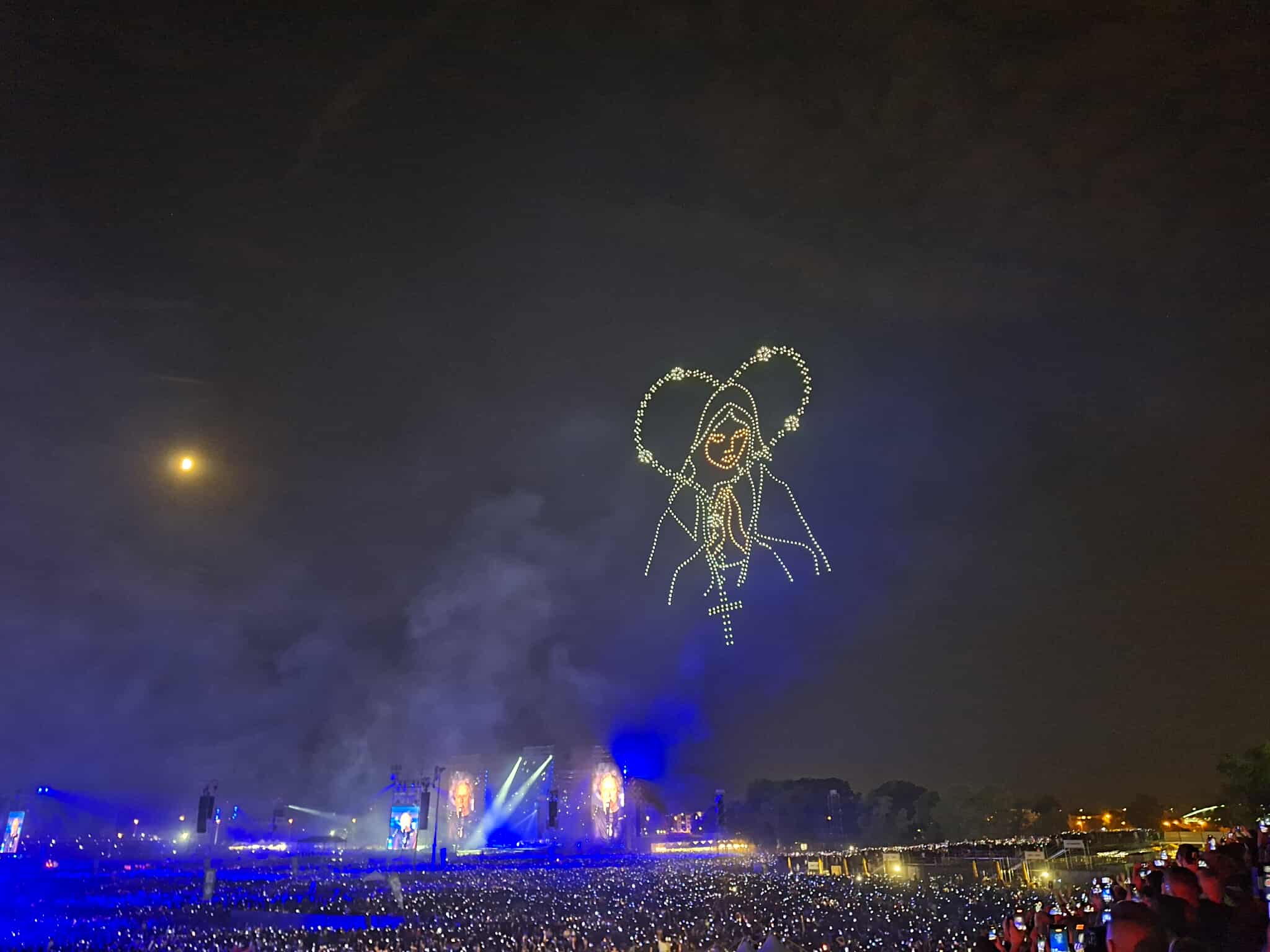 Wszystkie te przeboje, a także wiele innych, w tym kilka zamieszczonych na nowym albumie pod tytułem Hodočasnik („Pielgrzym”), pojawiły się w repertuarze koncertu na Hipodromie. Trudno opisać wrażenie, jakie robił śpiew tych najbardziej popularnych utworów wydobywający się z pół miliona gardeł. Świetny efekt zrobiły wyświetlane na wielu olbrzymich ekranach animacje ilustrujące na przykład utwór Kralj Tomislav, poświęcony pierwszemu chorwackiemu monarsze, którego 1100. rocznica koronacji przypada właśnie w tym roku, lub Oluja, upamiętniający operację „Burza”, w ramach której dokładnie przed 30 laty Chorwacja odzyskała Krajinę z rąk Serbów. Kiedy wykonywany był ten ostatni przebój, drony unoszące się nad Hipodromem wyświetliły obraz sokoła w barwach narodowych, rozpościerającego swoje skrzydła nad zgromadzonymi. Z kolei gdy publiczność śpiewała wraz z Markiem Perkoviciem „Nigdy nie zdradzę Boga”, w górze widniał obraz serca, które przekształciło się w wizerunek Maryi z różańcem. Na koniec postać Matki Bożej zniknęła, a pozostał sam różaniec zawieszony na ciemnym niebie. Był to absolutnie kulminacyjny moment koncertu. Chwilę potem w niebo popłynęły takty piosenki-modlitwy Maranatha, a na scenę wyszedł emerytowany biskup Szybenika, ks. Ante Ivas, autor tekstu, który na koniec pobłogosławił wzruszoną publiczność „W Imię Ojca i Syna i Ducha Świętego”. Podczas kolejnego utworu jeden z muzyków, gitarzysta Petar Buljan, przypomniał, że kilka dni wcześniej nastąpiło ponowne poświęcenie Chorwacji Najświętszemu Sercu Pana Jezusa. Zebrana publiczność powtarzała za nim słowa osobistego przyrzeczenia: „Ja i mój dom będziemy służyć Bogu”.