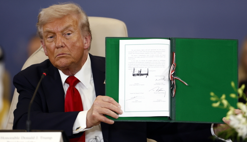 Prezydenci USA, Egiptu i Turcji oraz emir Kataru podpisali porozumienie w sprawie planu pokojowego dla Strefy Gazy. Ceremonia miała miejsce 13 października podczas szczytu w egipskim kurorcie Szarm el-Szejk. Zdaniem prezydenta Egiptu Adbela Fataha el-Sisi, stworzy to horyzont dla powstania państwa palestyńskiego.