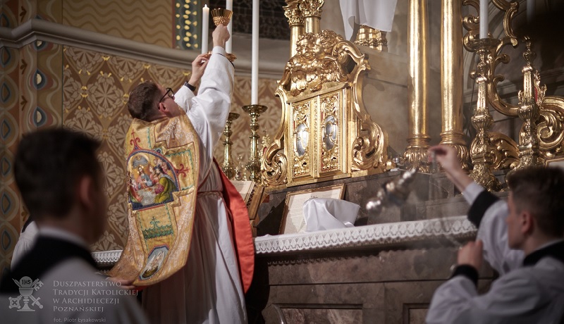 Siłą i motorem napędowym Poznańskiego Duszpasterstwa Tradycji Katolickiej jest zaangażowanie wiernych świeckich. To przede wszystkim oni przygotowują celebracje liturgiczne i dbają o ich piękno. Służbę liturgiczną pełni grupa kilkunastu mężczyzn, z których najmłodsi są licealistami, a najstarsi założyli już własne rodziny. Ich zadaniem jest nie tylko dbanie o szaty i naczynia liturgiczne, ale przede wszystkim troska o skrupulatne przestrzeganie ceremoniału. Wiedzę i umiejętności nabywają podpatrując innych, ale też dzięki samokształceniu. – Brałem udział w warsztatach liturgicznych, ale też dużo czytałem, zwłaszcza starsze ceremoniały, a kiedy już nauczyłem się łaciny, także ceremoniały łacińskie – mówi Aleksander Barszczewski, ceremoniarz poznańskiego duszpasterstwa. Jak zaznacza materiałów na ten temat – zwłaszcza w sieci – jest dużo, trzeba tylko wiedzieć gdzie ich szukać.