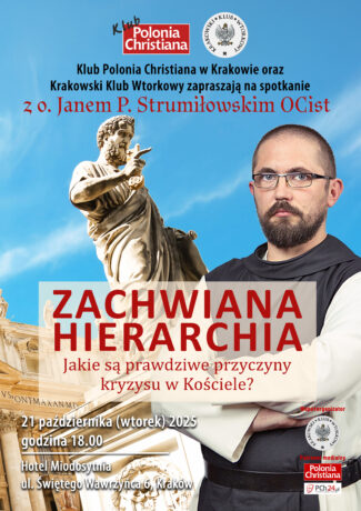 W Klubie „Polonia Christiana” w Krakowie zbliża się wartościowe spotkanie. Częsty gość łamów portalu PCh24.pl i naszej telewizji, O. Jan Strumiłowski, opowie jego uczestnikom o źródłach obecnego kryzysu wiary. Z pewnością nie chcesz tego przegapić!