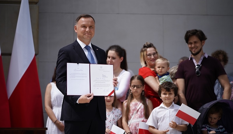 Prezydent Andrzej Duda podpisał projekt zmiany konstytucji w kwestii adopcji dzieci przez związki osób tej samej płci. Chodzi o zapisanie w ustawie zasadniczej wykluczenia takiej możliwości. Dokument trafi teraz do Sejmu.