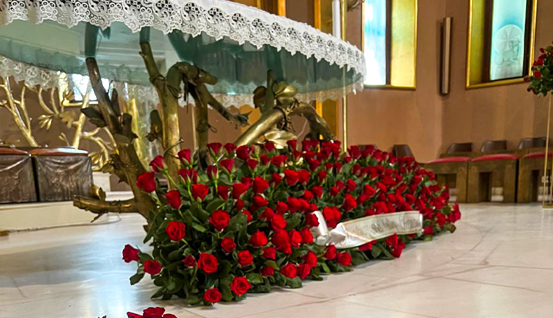 Dzięki tak licznemu odzewowi i zaangażowaniu Przyjaciół możliwe było przygotowanie wyjątkowej oprawy włoskiego Sanktuarium na najważniejszą dla jej kultu uroczystość – wspomnienie liturgiczne przypadające 22 maja! W nawie głównej kościoła złożono aż pięć podłużnych wieńców z czerwonych róż – jeden u stopni ołtarza ze wstęgą oraz okazałym napisem „Stowarzyszenie Ks. Piotra Skargi”; drugi przed samym ołtarzem, dwa po bokach i ostatni pod tabernakulum. Natomiast przy grobie św. Rity znalazło się aż kilkanaście herbacianych, różowych i fioletowych wiązanek róż ozdobionych rumiankiem i zielonymi liśćmi. Nasze kwiaty trafiły także do jednej z kaplic przy Sanktuarium, gdzie żółte róże, gerbery, rumianki i dzwonki uczyniły dzień wspomnienia św. Rity jeszcze bardziej wyjątkowym.