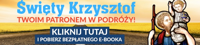 Z okazji wspomnienia św. Krzysztofa, dla wszystkich Czytelników naszego portalu przygotowaliśmy bezpłatny, wakacyjny e-book Ruszaj w drogę ze świętym Krzysztofem. Nasza elektroniczna książka zawiera modlitwy do świętego Krzysztofa, ciekawostki dotyczące patrona podróżujących, mapę z adresami kościołów i godzinami Mszy Świętych w turystycznych miejscowościach oraz propozycje pielgrzymek do miejsc kultu maryjnego w Polsce. E-book jest już dostępny na stronie internetowej.
