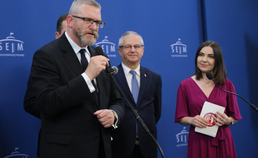„Europoseł Braun, który zniszczył dziś w naszym budynku wystawę, i został z niego wyprowadzony przez strażników, ma od dziś zakaz wstępu do polskiego parlamentu” – przekazał na platformie X marszałek Hołownia. „Nie ma miejsca dla chuliganów w Sejmie”, dodawał zaczepnie polityk.
