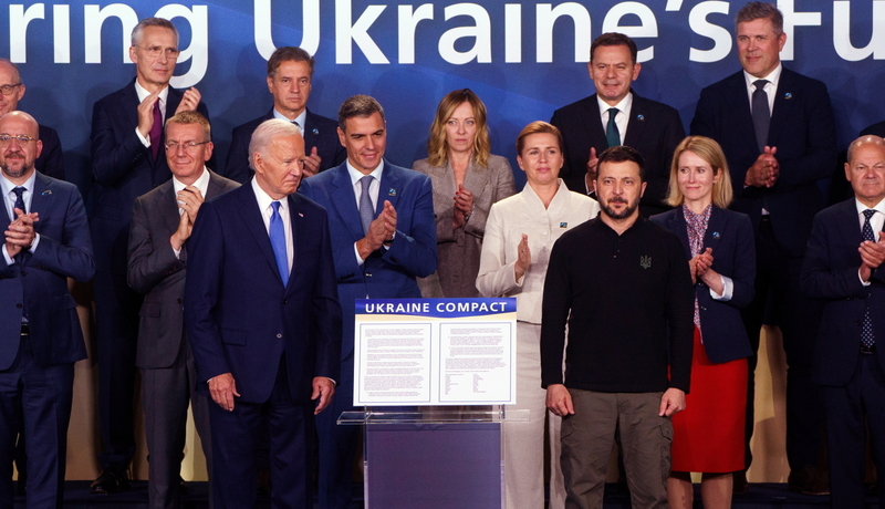 (Joe Biden i Wołodymyr Żeleński na szczycie NATO, fot. EPA/WILL OLIVER Dostawca: PAP/EPA.)