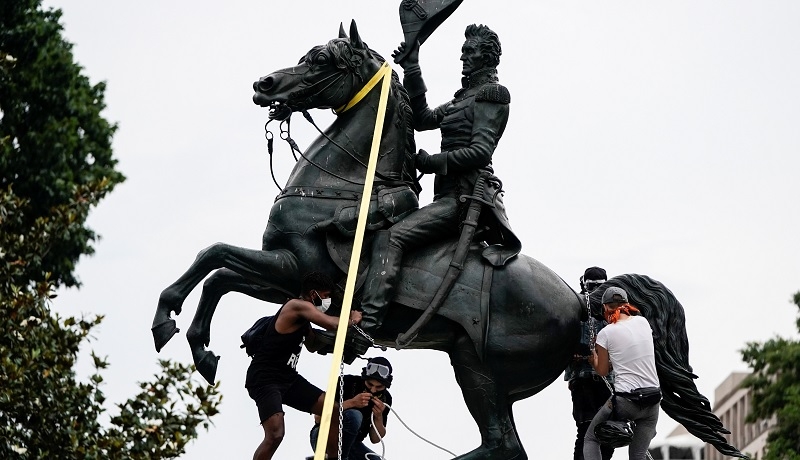 W poniedziałek kilku protestujących wdrapało się na konny pomnik Jacksona umieszczony w parku Lafayette’a w Waszyngtonie i obwiąząło go linami. Podjęto próbę obalenia pomnika. Policja udaremniła zamiary ok. 200 zgromadzonych wokół monumentu demonstrantów. Aby rozproszyć tłum, funkcjonariusze użyli gazu łzawiącego. Policjanci ustawili się następnie na ulicy przed parkiem, blokując dostęp do pomnika.