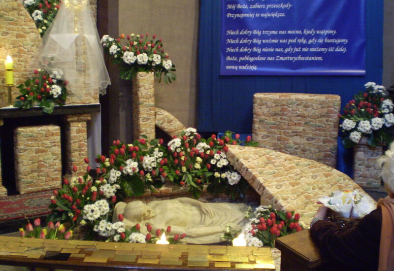 Wizerunek papieża Polaka umieszczono m.in w kompozycji Grobu Pańskiego w Kościele Nawiedzenia Najświętszej Marii Panny znajdującym się niedaleko Rynku Nowego Miasta na wiślanej skarpie. Pod spoczywającym Chrystusem widnieje napis „Chodźcie, powróćmy do Pana!”, a w głębi instalacji „Prawda was wyzwoli”. W centralnej części kompozycji umieszczono fragment kwietnej łąki, a wokół niej portrety ważnych dla Kościoła postaci m.in.: Jana Pawła II, kardynała Stefana Wyszyńskiego, Francesca Forgione – znanego jako Ojciec Pio, Matki Teresy z Kalkuty, czy ks. Jerzego Popiełuszki.
