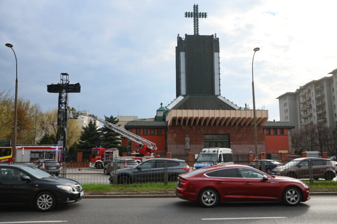 W dniu 3.04.2026 r. około godziny 15.00 spłonął drewniany krzyż stojący na terenie parafii Św. Maksymiliana Kolbego w Warszawie, przy ul. Rzymowskiego 35.