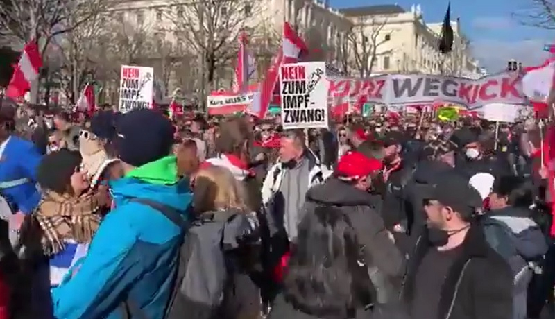 Przemawiając do tłumu, były minister spraw wewnętrznych Herbert Kickl oskarżył rząd o „taniec na krawędzi szaleństwa” i opisał ograniczenia Covid-19 jako „tak dziwne i szalone, że żaden hollywoodzki reżyser nie mógł tego wymyślić”.