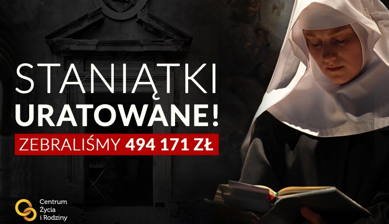 – Nasza akcja „Ratujmy Staniątki” okazała się wielkim sukcesem. Nie spodziewaliśmy się, że nasi Przyjaciele i wszyscy Darczyńcy zareagują w tak hojny sposób. Naszym celem było zebranie środków na utrzymanie Opactwa i mniszek przez trzy miesiące. Potrzebowaliśmy na ten cel około 120 tys. zł. Ostatecznie zebraliśmy blisko pół miliona złotych. To potężna suma pieniędzy, która pozwoli Siostrom Benedyktynkom spać spokojnie przez rok. Cieszymy się, że naszą akcją zwróciliśmy także uwagę opinii publicznej na problemy zakonów kontemplacyjnych, które często wymagają wsparcia wiernych – mówi Paweł Ozdoba, prezes Centrum Życia i Rodziny, fundacji, która zorganizowała zbiórkę.