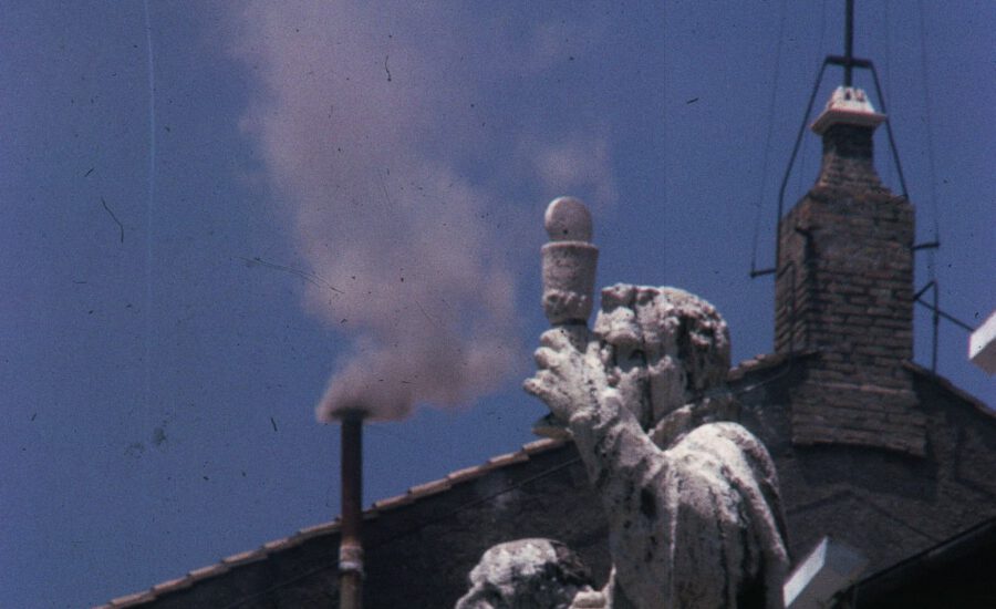 O wyniku wyborów informuje świat zewnętrzny dym z komina nad Kaplicą Sykstyńską: jeśli jest czarny, oznacza to, że nie wybrano jeszcze nowego papieża, jeśli biały (w praktyce najczęściej jasny) – papież został wybrany. Dym powstaje ze spalenia kartek do głosowania, do których dodaje się mniej lub więcej słomy i ewentualnie innych substancji (dla uzyskania odpowiedniego koloru dymu).