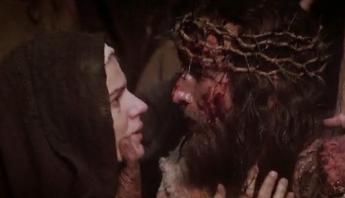 Te wstrząsające obrazy z „Pasji” Mela Gibsona znane są niemal każdemu. Ewangelie nie przekazują nam obrazu Matki Bożej Bolesnej zbyt wyraziście. Wiemy, że towarzyszyła ona Męce Chrystusa, ale gdyby posiłkować się jedynie tekstem ewangelistów moglibyśmy skonstatować, iż stała gdzieś z boku przerażona nagłym gwałtem, dokonanym na jej jedynym, ukochanym dziecku. „Pasja” za pomocą następujących kolejno po sobie sugestywnych obrazów pokazuje nam, jak Maryja nieustannie śledziła bieg wydarzeń, jak walczyła o każdy kontakt wzrokowy z umęczonym Chrystusem, jak każdy wymierzony Mu cios wstrząsał konwulsyjnie jej ciałem. To ona blada i do głębi poruszona, jako pierwsza staje się Orędowniczką św. Piotra, który zdradziwszy cierpiącego Pana, stanął przez moment na równi z Judaszem.