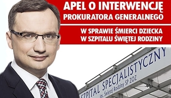 „Szanowny Panie Prokuratorze, zwracam się do Pana z apelem o objęcie bezpośrednim nadzorem postępowania, które prowadzone jest w sprawie śmierci dziecka narodzonego w wyniku nieudanego zabiegu aborcji, co miało miejsce w nocy z 6 na 7 marca 2016 r. w Szpitalu Świętej Rodziny w Warszawie” – czytamy w apelu, który można podpisać korzystając ze strony protestuj.pl.