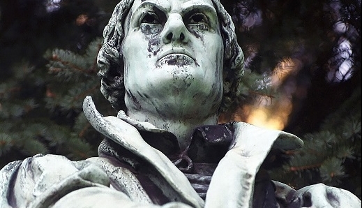 Ciekawa rzecz, że takie właśnie oblicze rewolucji protestanckiej – jako projektu „nowego wspaniałego świata” opartego na sile militarnej i politycznej, istotowo antychrześcijańskiego – manifestuje się w sposób całkiem otwarty (z obfitości serca usta mówią) w tak ważnej dla samych heretyków formie „upamiętnienia”, jaką jest słynna genewska Ściana Reformacji – gdzie obok centralnej dla lokalnej tradycji postaci Kalwina, na poczesnych miejscach znalazło się między innymi dwóch wojaków, bynajmniej nie subtelnych teologów: lord‑protektor Cromwell i admirał de Coligny (który byłby może został francuskim Cromwellem, gdyby kontrrewolucja nie wykazała się refleksem). Otóż w całym tym rozległym, quasi‑socrealistycznym monumencie, wśród dziesiątków pomników i pomniczków heretyckich liderów (z Polaków, chwała Bogu, ma tu swoje popiersie jeden tylko Jan Łaski), trudno dopatrzeć się bodaj jednego znaku Krzyża Chrystusowego (sic).